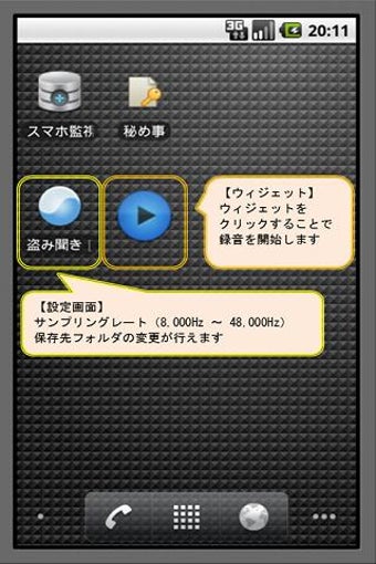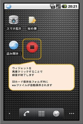 盗み聞きは、ウィジェットをワンタップで簡単にすぐ録音できるだけでなく、指定した時間の自動録音、自分の声も含めた通話録音ができ、使いやすくて便利な録音アプリです。